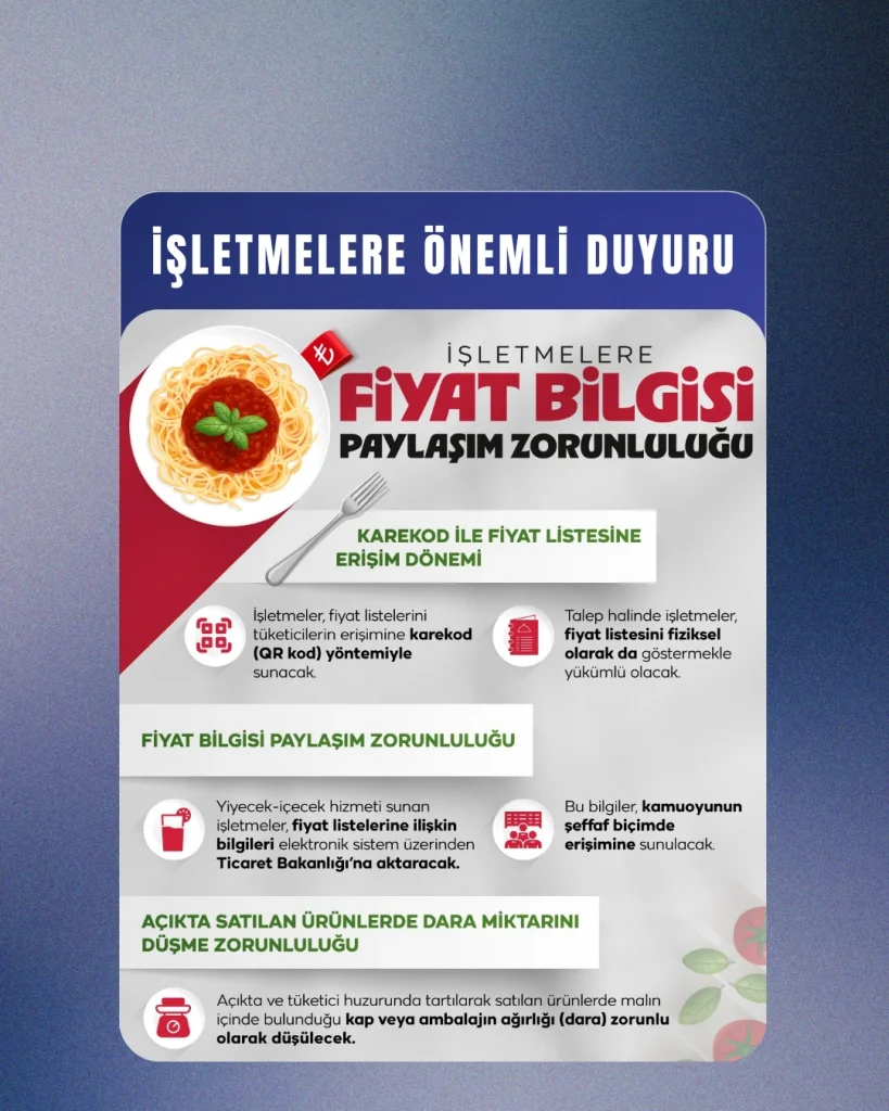 İşletmeler, fiyat listelerinde yer alan verileri Ticaret Bakanlığı tarafından kurulacak dijital sisteme aktarmakla yükümlüdür.