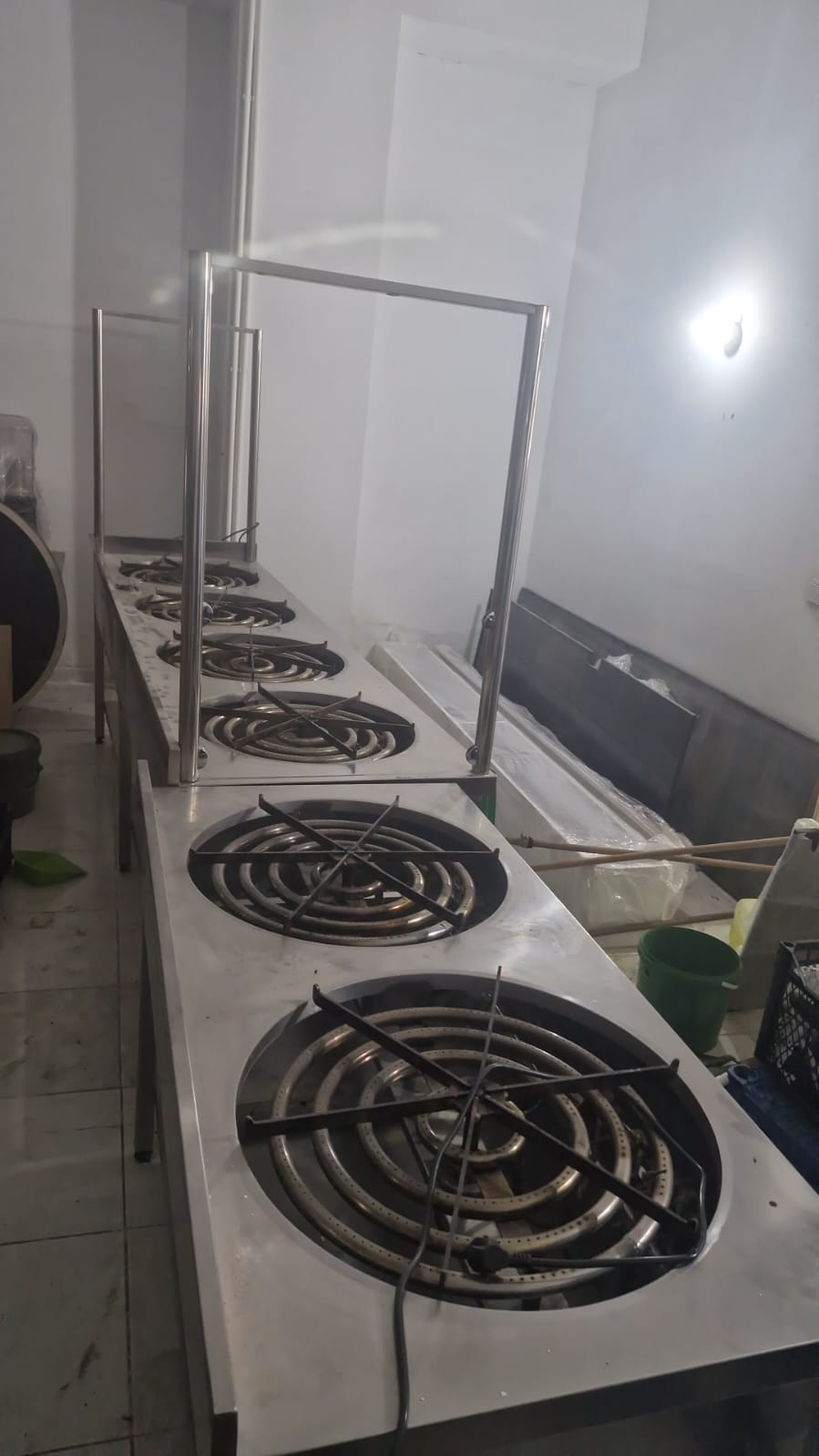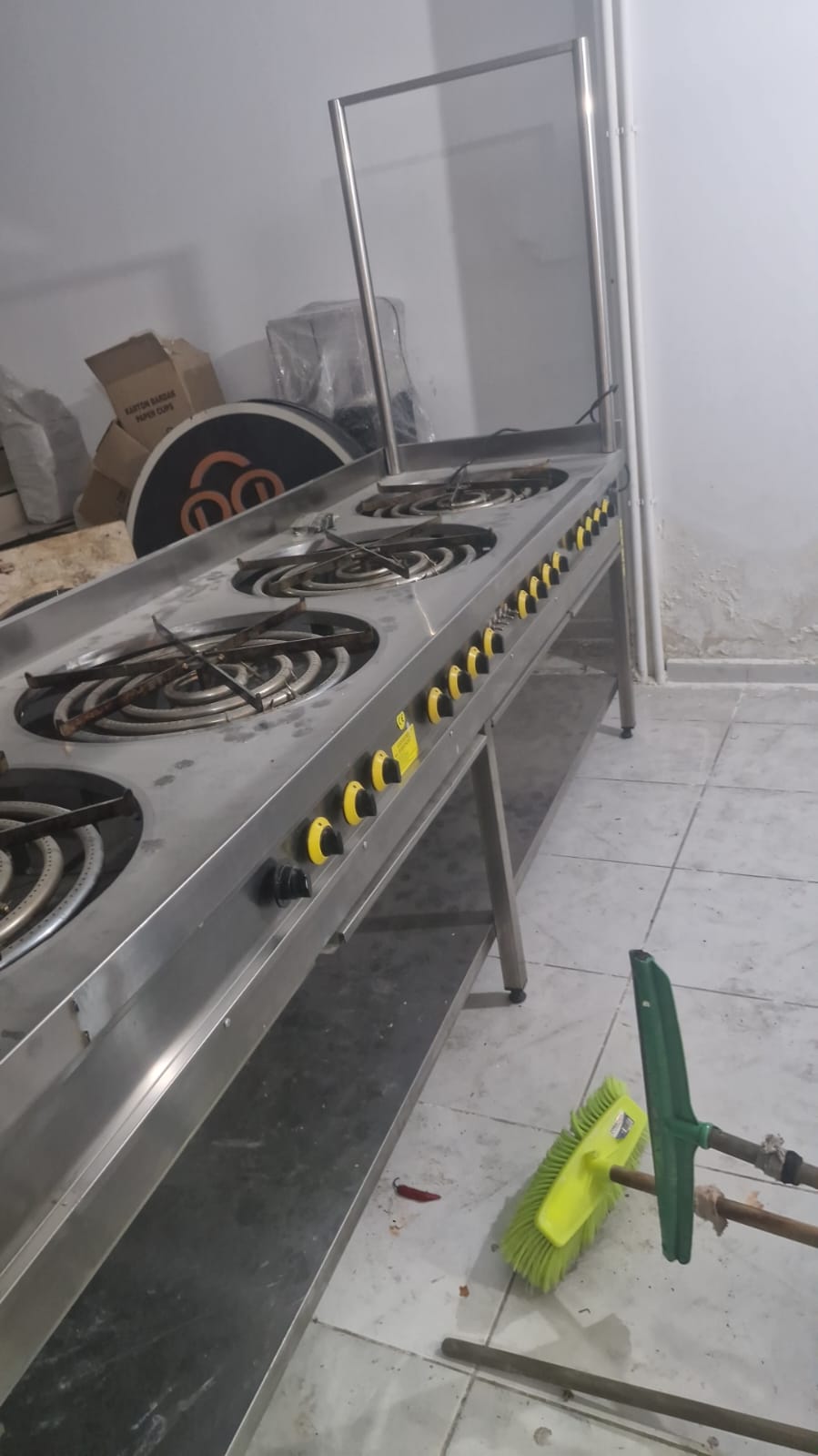 Portatif kebap ocağı – 1 adet, Hamur makinesi (büyük boy) – 1 adet, 6’lı yemek barmerisi (4+2, emniyetli) – 1 adet, 3’lü “canavar ocak” (emniyetli) – 1 adet, İnoks davlumbaz – 1 adet, Fritöz – 1 adet